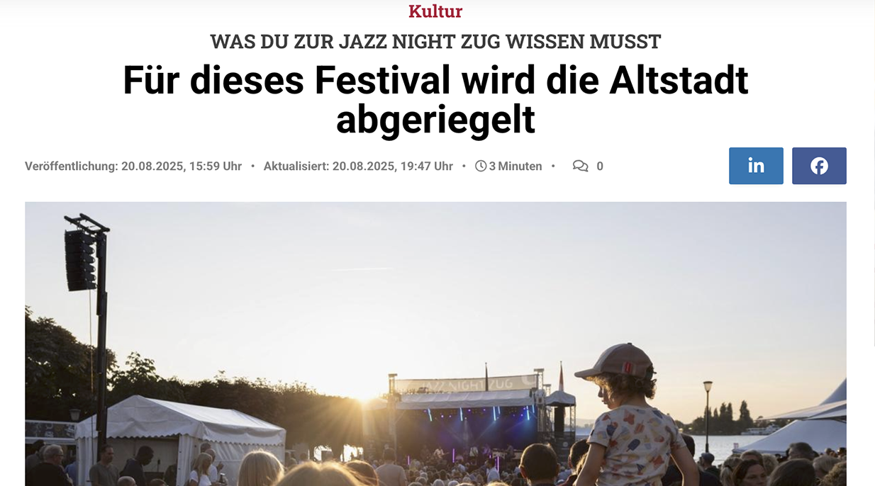Jetzt vormerken: Do, 20. & Fr, 21. August 2026 – die Zuger Altstadt wird wieder zur Jazzbühne. Wir freuen uns auf euch!