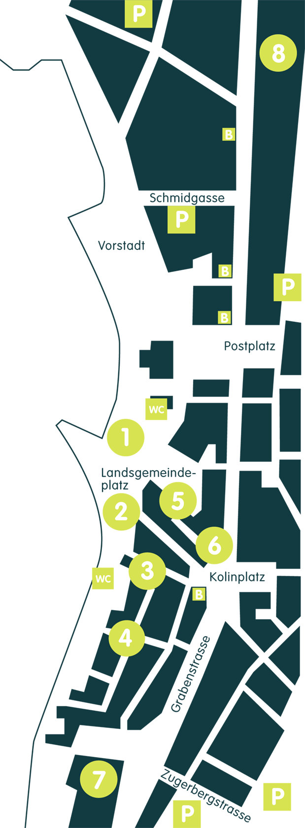 Diverse Restaurants, Bars und Essenstände in der Zuger Altstadt